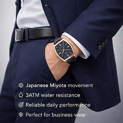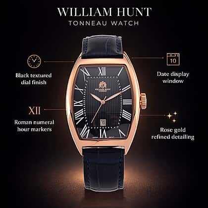 Turn heads instantly with the William Hunt Pure White Stainless Steel Mix Metal Watch in rose gold. The warm rose gold-tone plated case surrounds a dark dial, creating a striking contrast that feels bold yet refined. Roman numeral hour markers enhance its classic character, while the genuine black leather strap adds depth and everyday comfort. Crafted on a durable stainless steel base and powered by reliable movement, this timepiece is built for consistent performance. Whether paired with sharp tailoring or evening attire, it delivers a strong presence and a polished finishing detail that completes your look effortlessly.