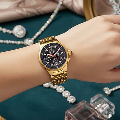 This William Hunt multifunction quartz watch is ideal for women who enjoy bold yet refined accessories. The 42mm stainless steel case is plated in IPG gold, paired with a grey sunray brushed dial featuring numeral detailing and multifunctional keys. A gold stainless steel strap with buckle adds a luxurious finish, while mineral glass protects the dial. Powered by Miyota JP15 multifunctional movement and a Japanese original battery, it offers precision and durability. With 5ATM water resistance, this watch is perfect for those who desire status, style, and everyday practicality in one elegant piece.