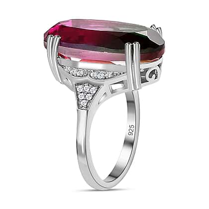 Watermelon Colour Tourmaline Quartz and Natural Zircon Ring in Platinum Overlay Sterling Silver 10.40 Ct