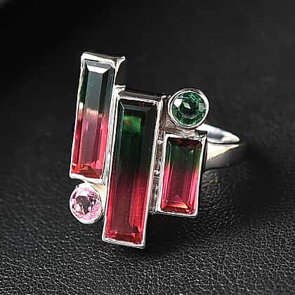 Watermelon Quartz Triplet, Triplet Quartz & Pink Triplet Quartz Ring in Rhodium Overlay Sterling Silver 4.90 Ct.