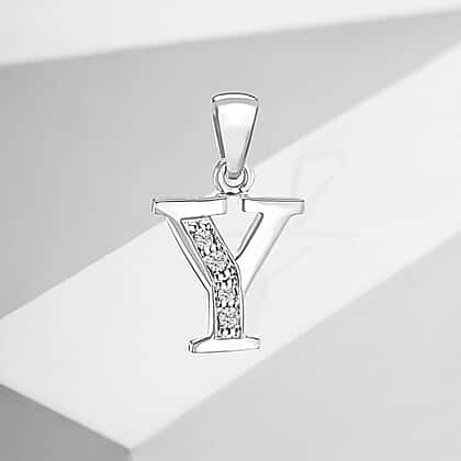 Y Initial Pendant in Sterling Silver Rhodium Plated Cubic Zirconia 9.6mm x 19.2mm