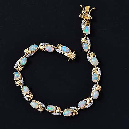 Wegeltena Ethiopian Opal & Natural Zircon Bracelet (Size 7.0) in 18K Vermeil Yellow Gold Plated Sterling Silver 4.74 Ct, Silver Wt. 10.11 Gms