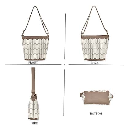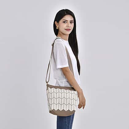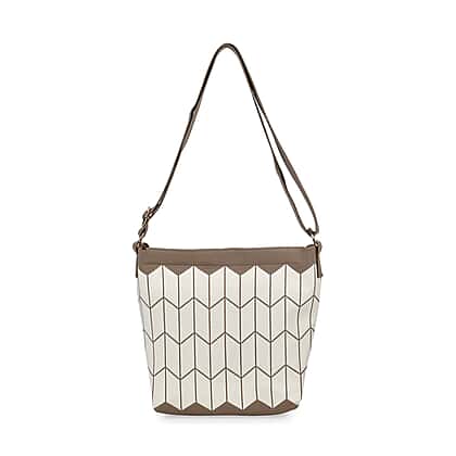 Wheat Pattern Crossbody Bag with Shoulder Strap (120cm) - Brown & White