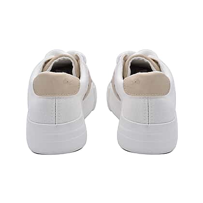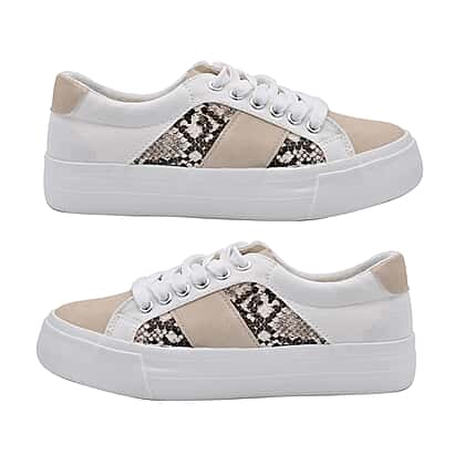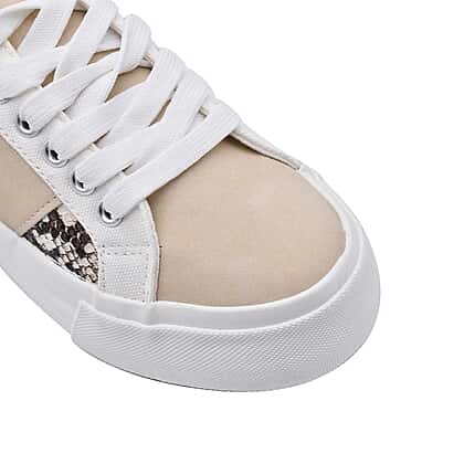 White and Beige Canvas Trainers with Snake Pattern Details