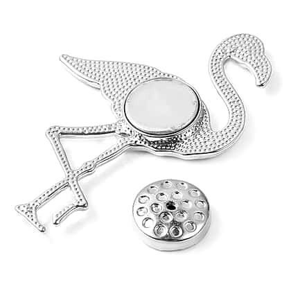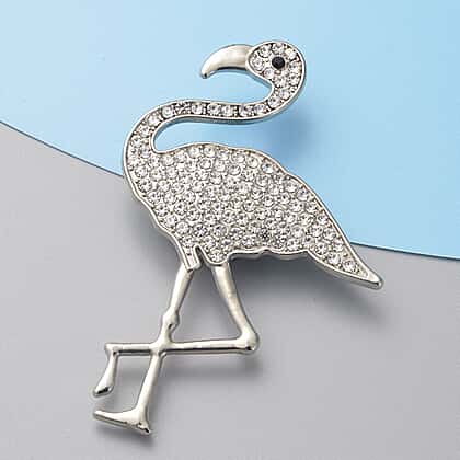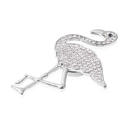 White and Black Austrian Crystal (Rnd) Crane Magnetic Brooch in Silver Tone