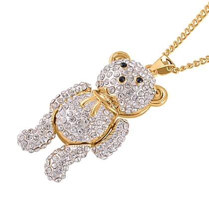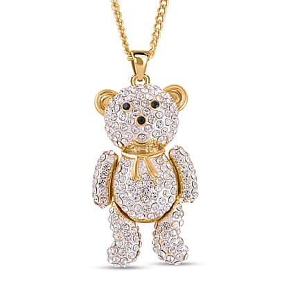 White and Black Austrian Crystal Teddy Bear (Necklace -28-2.5 Inch Ext) in Gold Tone