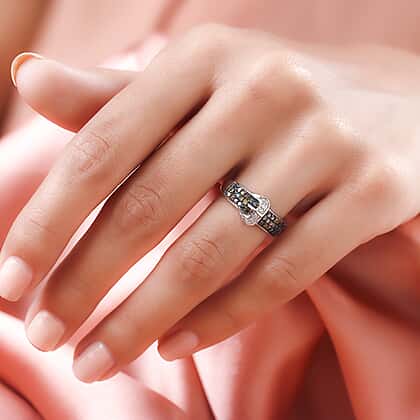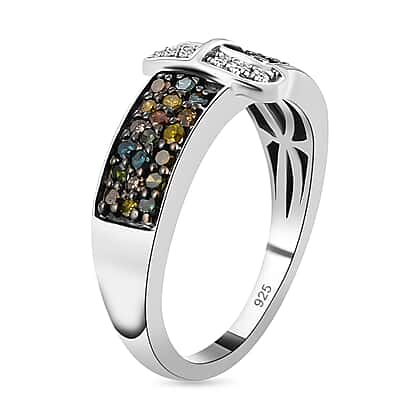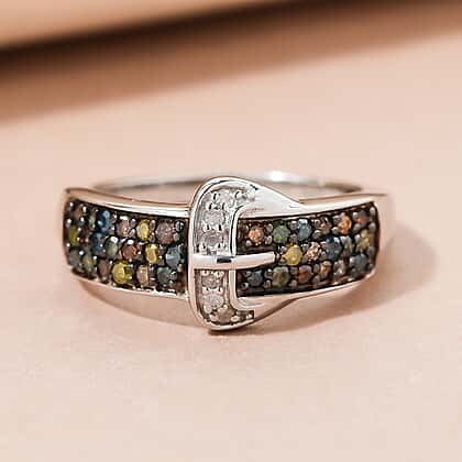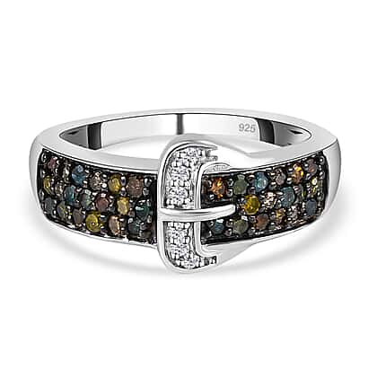 White and Multi Colour Diamond Buckle Ring in Platinum Overlay Sterling Silver 0.50 Ct.