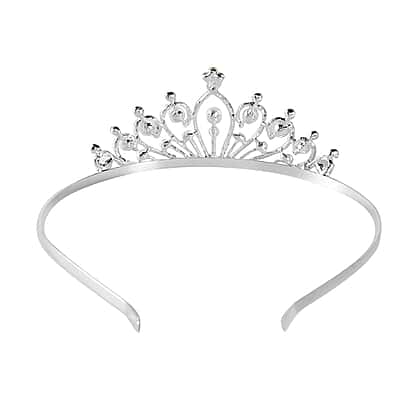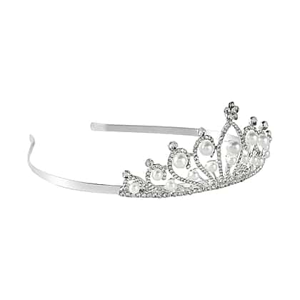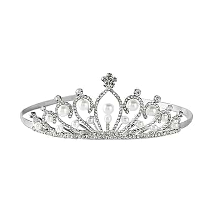 White Austrian Crystal and Simulated Pearl Tiara in Silver Tone