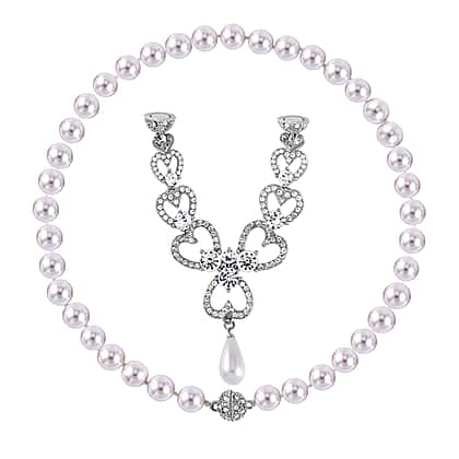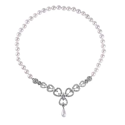 White Austrian Crystal and White Shell Lovers Knot Pearl Necklace (Size - 23)