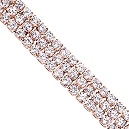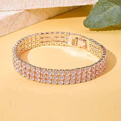 Make everyone go green with envy by wearing this sparkling white Austrian crystal bracelet on your wrist. This 7.5-inch bracelet features three rows of round-shaped crystals in four-prong settings to radiate amazing fire and brilliance to capture attention. The links of this three-rows tennis bracelet are connected in a unique manner to offer maximum flexibility to the jewel. Set in a durable frame with a rosetone, a fold-over clasp secures this bracelet. This enchanting bracelet comes with a finished back gallery to ensure comfortable wear.