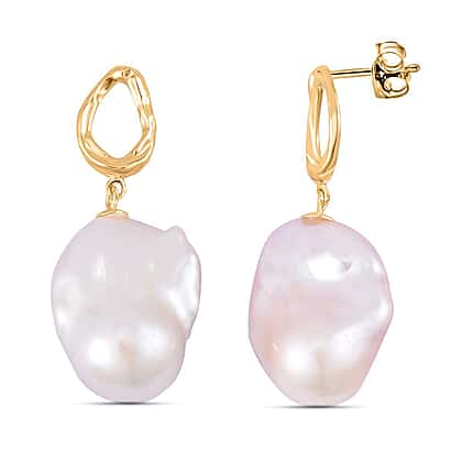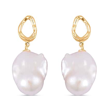 White Baroque Pearl Earrings in Yellow Gold Plated Sterling Silver