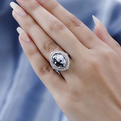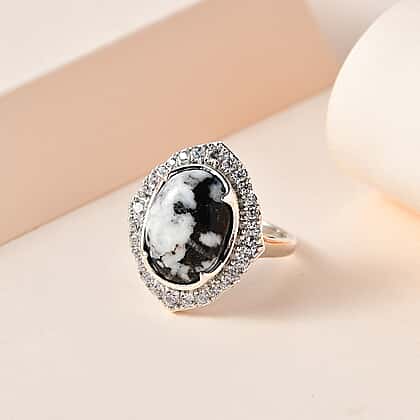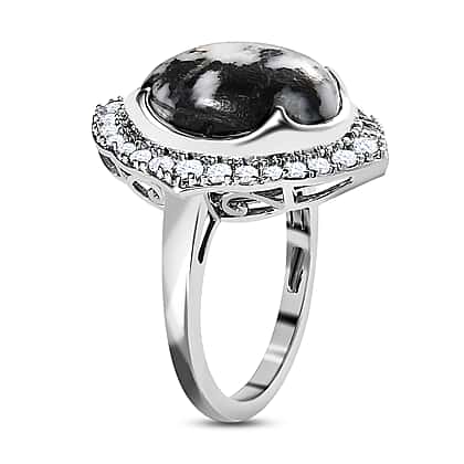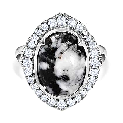 White Buffalo and Natural Zircon Ring in Platinum Overlay Sterling Silver 6.53 Ct