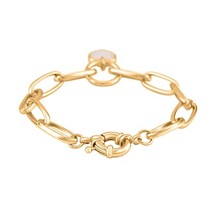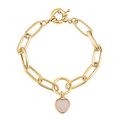 Softly shimmering with every gesture, this created white cat’s eye heart charm bracelet captures a quiet kind of beauty. The gentle glow of the cat’s eye stone — admired for its rare chatoyancy and silky lustre — symbolises intuition and calm. Each heart-shaped charm dangles gracefully from a gold-tone chain of bold, open links, creating a chic contrast of strength and softness. Finished with a secure Senorita clasp, this bracelet sits comfortably on the wrist, making it perfect for both daily wear and special moments that deserve a touch of sentiment.
