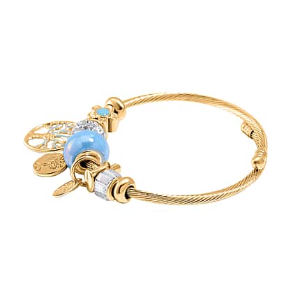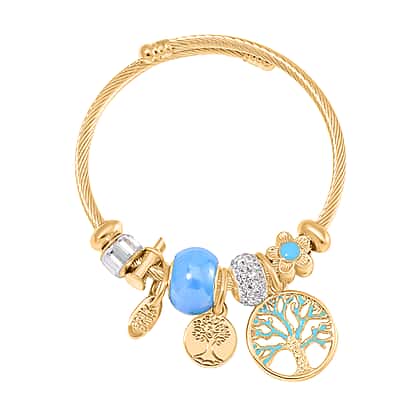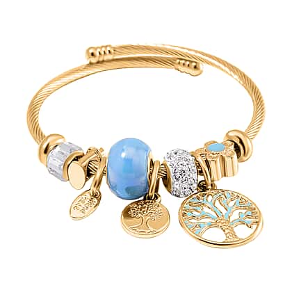 White Colour Ceramic Beads Enamelled Charms Tree Of Life Adjustable Bangle