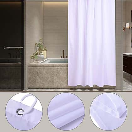 White Colour Waterproof Shower Curtain with 12 Hooks Size 180x180cm