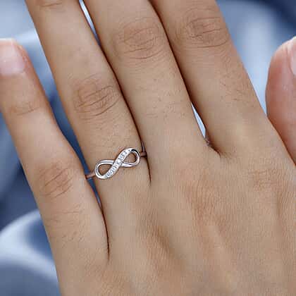 White Cubic Zirconia Fancy Ring in Rhodium Overlay Sterling Silver 0.08 ct 0.076 Ct.