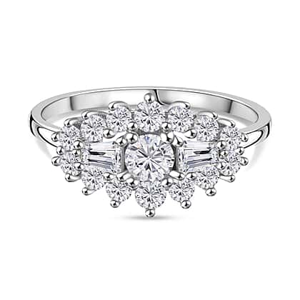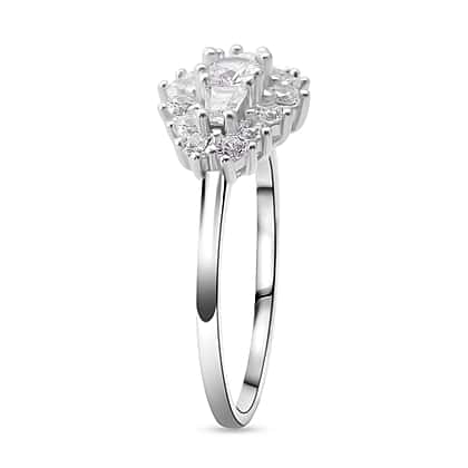 White Cubic Zirconia Boat Ring in Rhodium Overlay Sterling Silver 1.41 Ct.