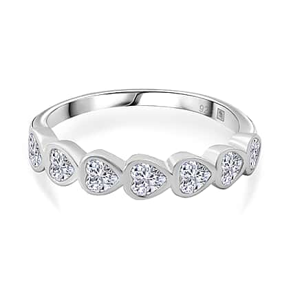 White Cubic Zirconia 7-Heart Ring in Rhodium Overlay Sterling Silver 1.53 ct 1.530 Ct.