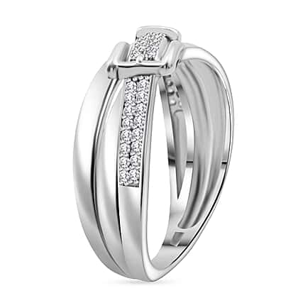 White Cubic Zirconia Ring in Rhodium Overlay Sterling Silver