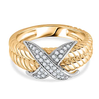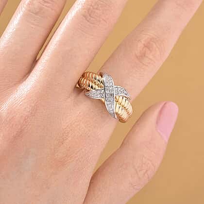 White Cubic Zirconia Ring in White & Yellow Gold Tone