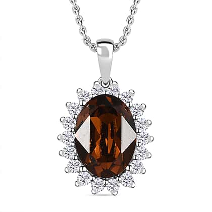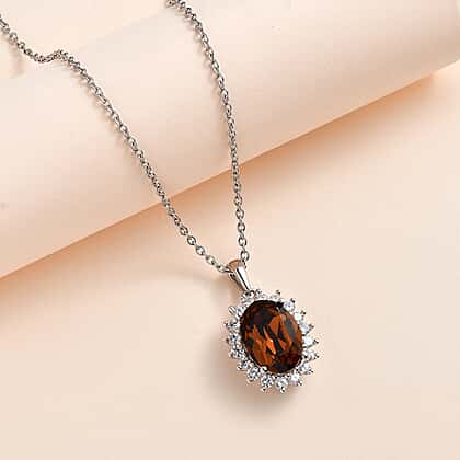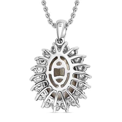 White Cubic Zirconia & Smoked Topaz Finest Austrian Crystal Platinum Overlay Sterling Silver Halo Pendant with Stainless Steel Chain (Size 20)