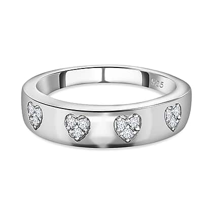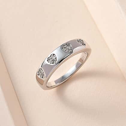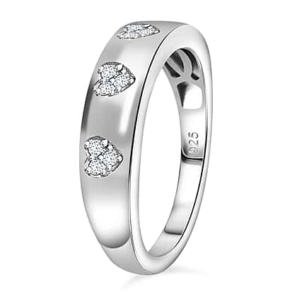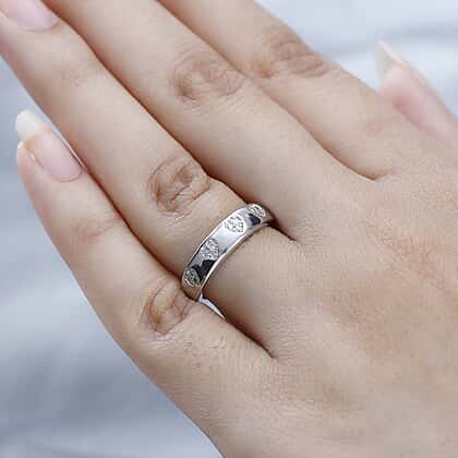 White Diamond Band Ring in Platinum Overlay Sterling Silver 0.10 ct 0.096 Ct.