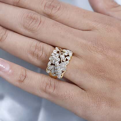 White Diamond Cluster Ring in 18K Vermeil YG Plated Sterling Silver
