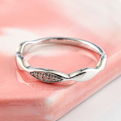 White Diamond Ring in Platinum Overlay Sterling Silver 0.03 ct 0.030 Ct.