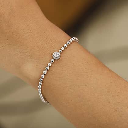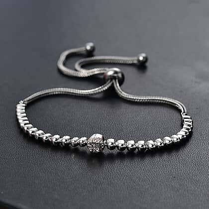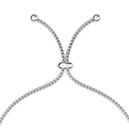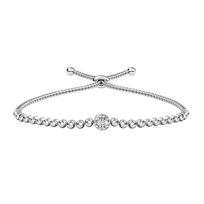 White Diamond Adjustable Chain Bracelet (Size - 10.5) in Silver Tone