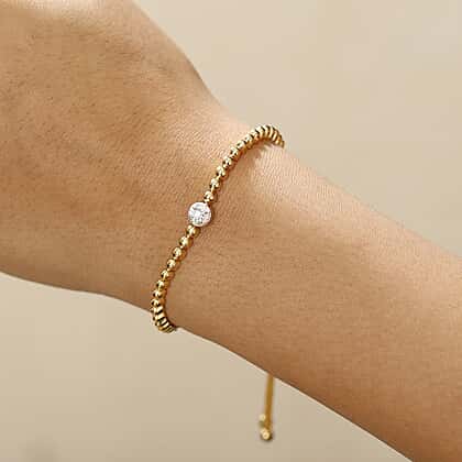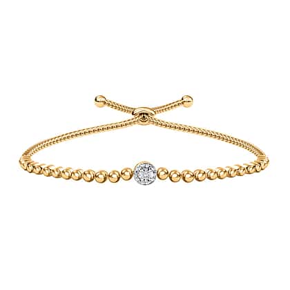 White Diamond Adjustable Chain Bracelet (Size - 10.5) in Yellow Gold Tone