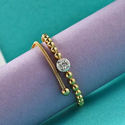 Natural White Diamond Adjustable Chain Bracelet - GoldTone