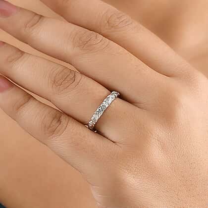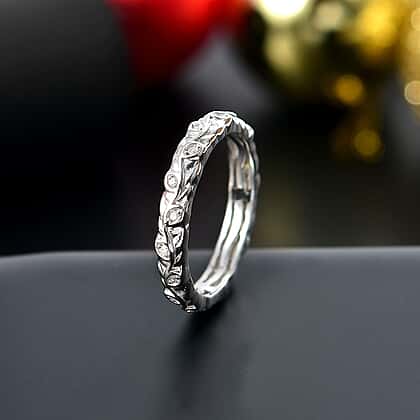 White Diamond Band Ring in Rhodium Overlay Sterling Silver