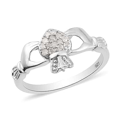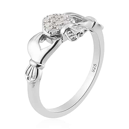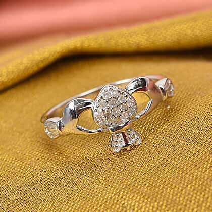 White Diamond Claddagh Ring in Platinum Overlay Sterling Silver