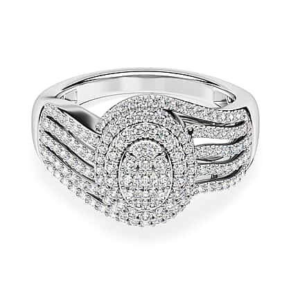 White Diamond Cluster Ring in Rhodium Overlay Sterling Silver, Silver Wt. 5 Gms 1.015 Ct.