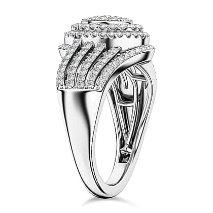 White Diamond Swirl Cluster Ring in Rhodium Overlay Sterling Silver 1.01 Ct.