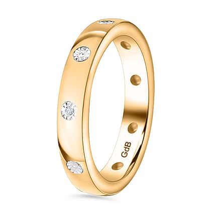 This Full Eternity Yellow Gold Overlay Band Ring inlaid with Natural White Diamonds is a masterpiece in jewellery making. The gleaming band features sparkling white diamonds in a secure flush setting that lends it an sleek and sophisticated finish. With the diamonds going around the band, the full eternity design represents eternal love, making it perfect as a wedding band.