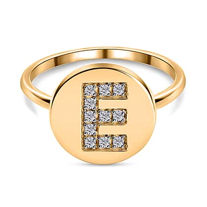 White Diamond Initial-E Ring in 14K Gold Overlay Sterling Silver