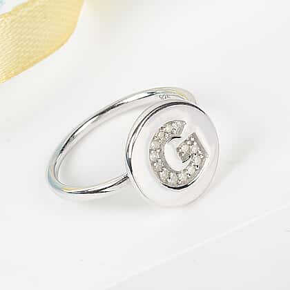 White Diamond Initial-G Ring in Platinum Overlay Sterling Silver