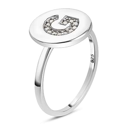 White Diamond Initial-G Ring in Platinum Plated Sterling Silver