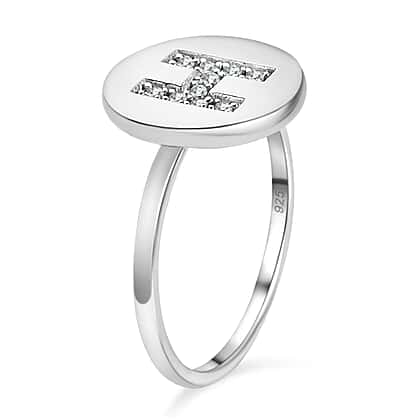 White Diamond Initial-H Ring in Platinum Overlay Sterling Silver