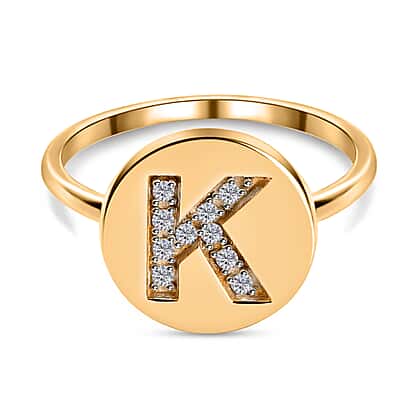 White Diamond Initial-K Ring in 14K Gold Overlay Sterling Silver
