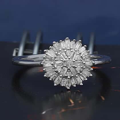 White Diamond Ring in Platinum Overlay Sterling Silver 0.50 Ct.