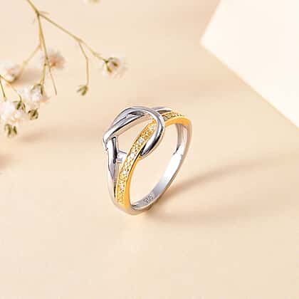 White Diamond Ring in Yellow Gold Plated & Platinum Overlay Sterling Silver
