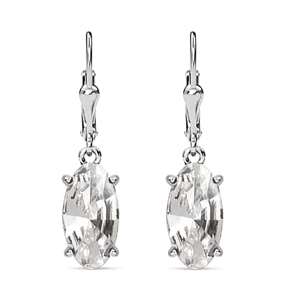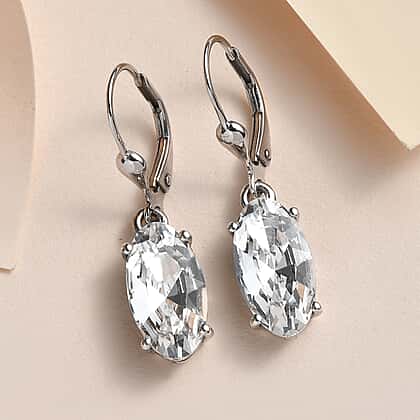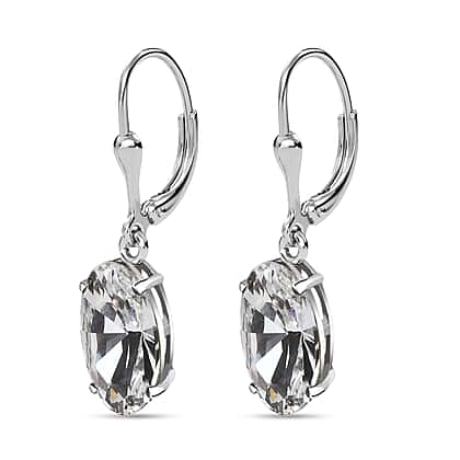 White Finest Austrian Crystal Dangle Earrings in Platinum Overlay Sterling Silver