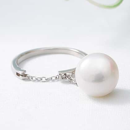 Curated with a smooth finish, this white freshwater pearl ring is made in rhodium overlay sterling silver. Showcasing the beauty of nature, this chain ring features around 11mm pearl dangling from the dainty little chain. These precious pearls require high precision and expert lapidaries for setting them. These freshwater pearls are affordable and have lustre, making them unique and appealing. You can pair this stunning ring with a formal suit or stack it together with a simple pearl necklace to enhance the look of your outfit and the occasion.