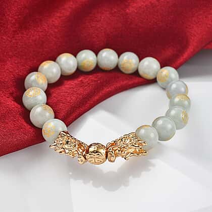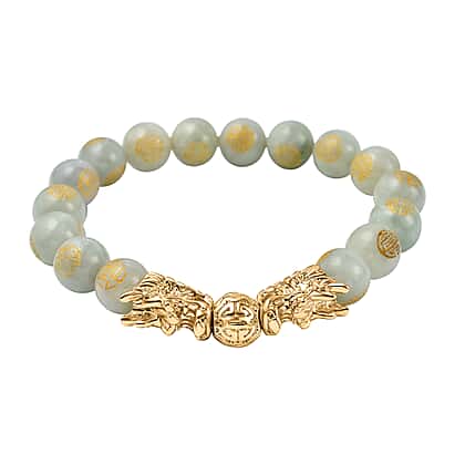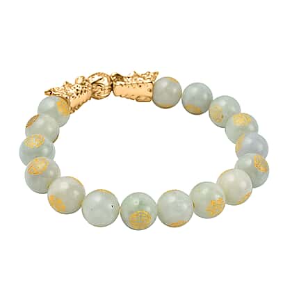 Whether you are seeking serenity in your daily life, or a meaningful gift for a loved one, this White Jade Beads Adjustable Bracelet is the perfect choice. The stretchable bracelet features 16 carefully-selected and engraved white jade beads set alongside two gold-tone Feng Shui dragons. The stretchable string allows a snug fit for the bracelet.