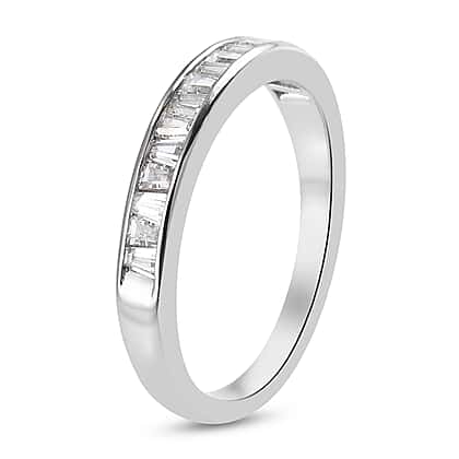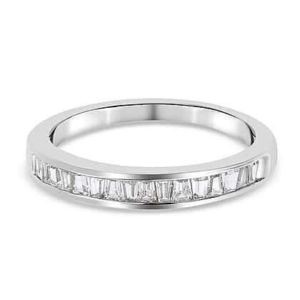 White Sapphire Band Ring in Platinum Overlay Sterling Silver
