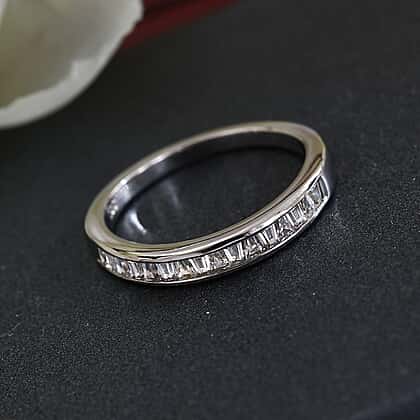 1.04 Ct. White Sapphire Half Eternity Band Ring in Platinum Plated Sterling Silver