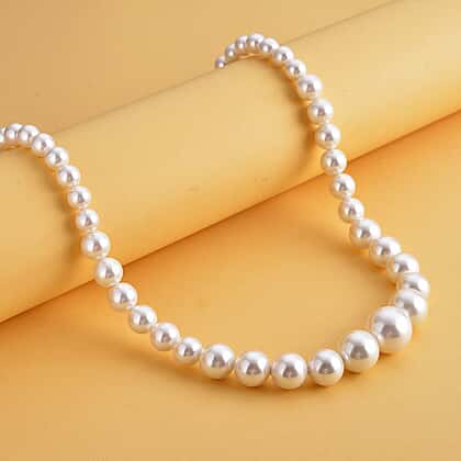 Grace your neckline with this exquisite white shell pearl necklace and make heads turn around. It is made from round pearls set in a durable string giving it durability. This necklace features a lobster clasp fastening made from 925 sterling silver with a rhodium overlay to prevent rusting. This simple and unique beads necklace is what you need to grace the look of your outfit, and pair it with matching pearl earrings to complete the set.
