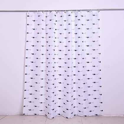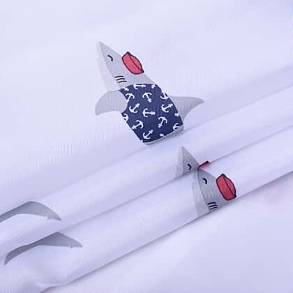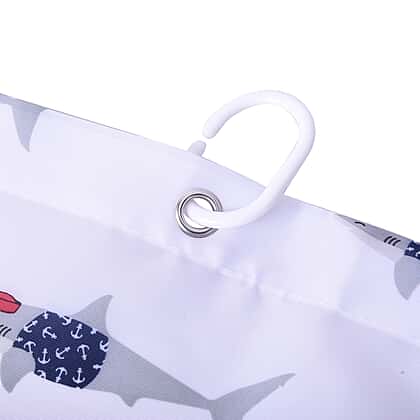 White Waterproof Shower Curtain with Shark Pattern and 12 Hooks Size 180x180cm